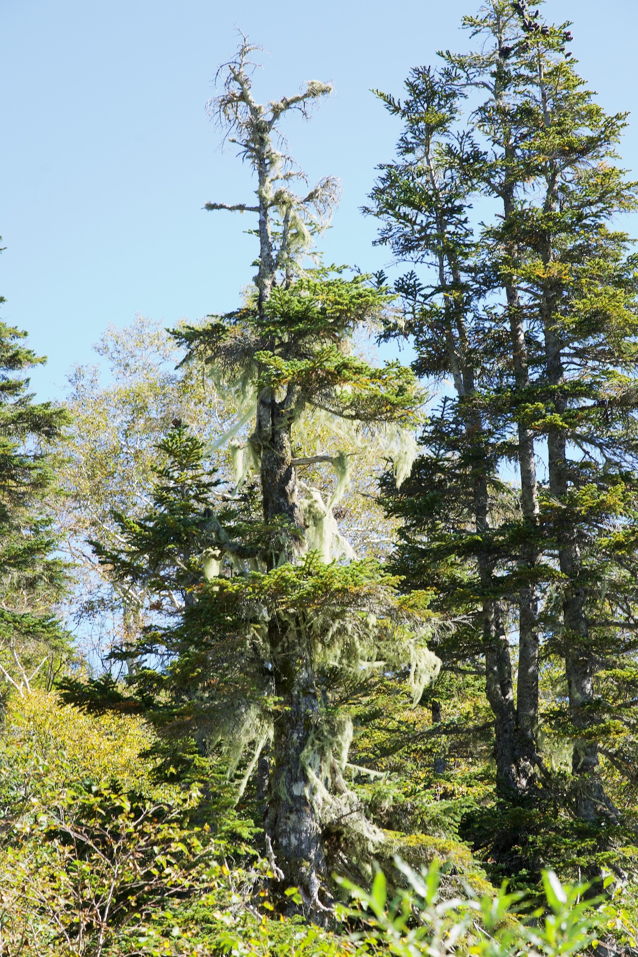 サルオガセ(木に付着して空中の水分と光合成だけて成長している糸状の植物)