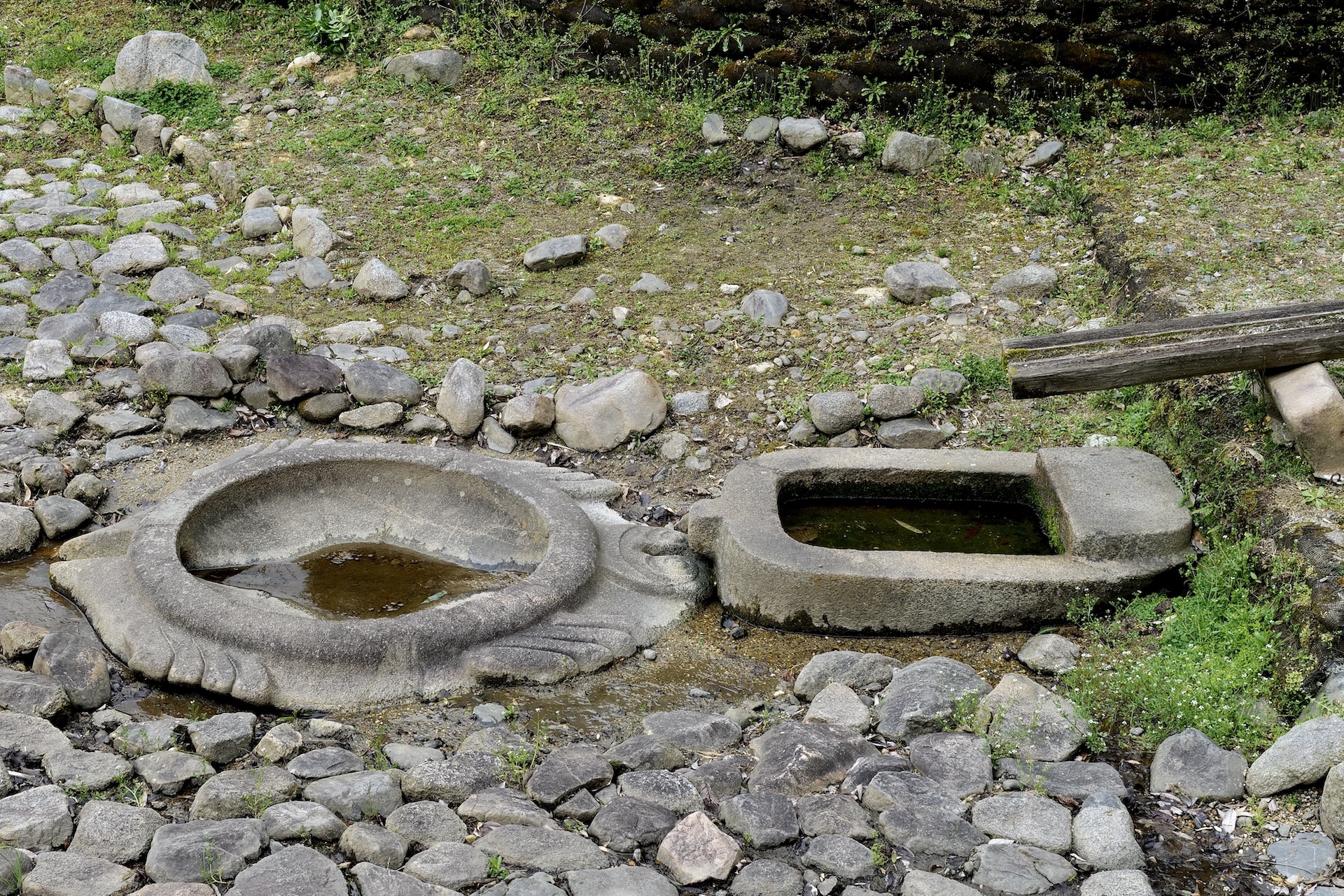 亀型石造物(左が亀型石造物、右が小判型石像物)