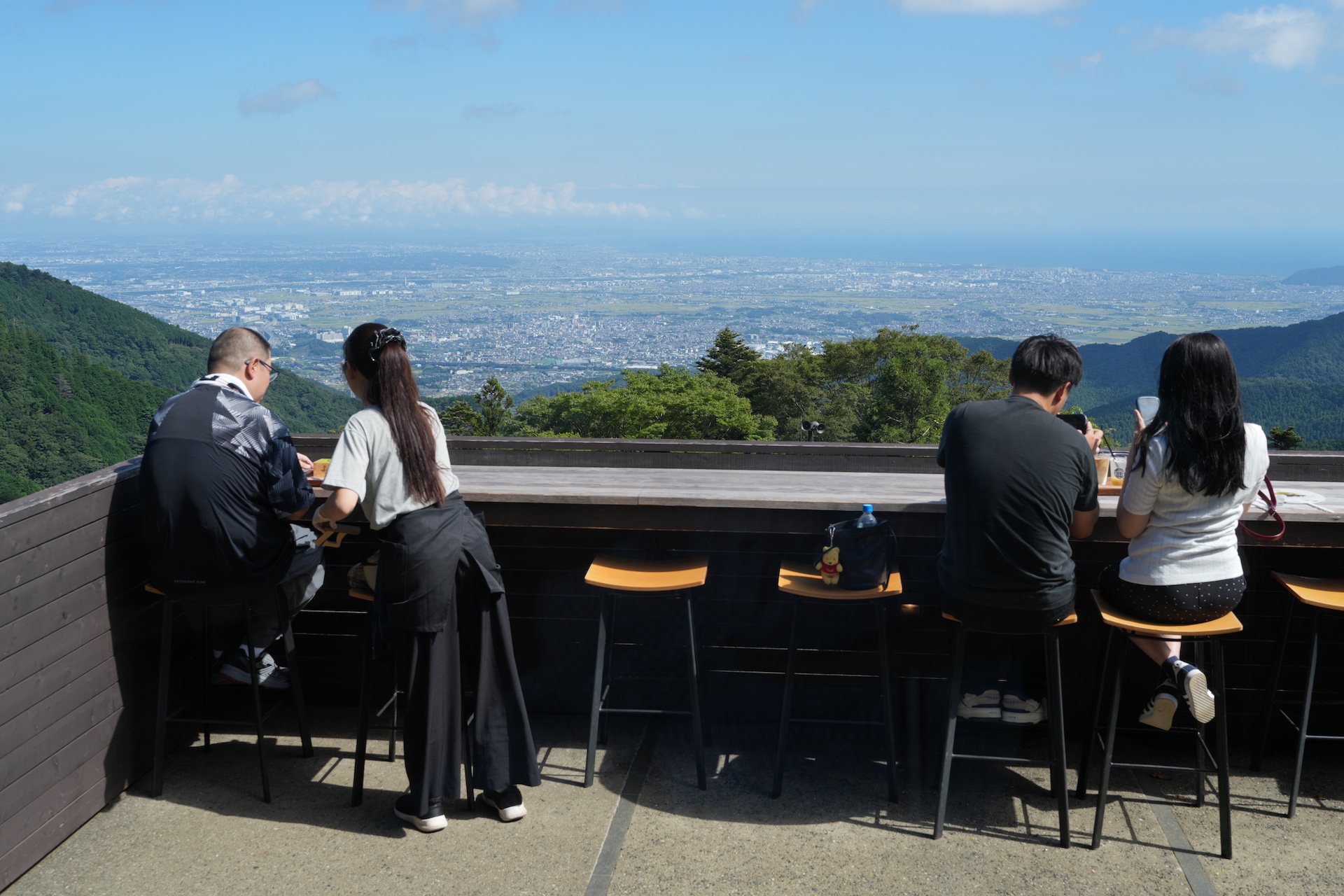 眼下に相模湾沿岸の街が広がる (阿夫利神社のカフェから)